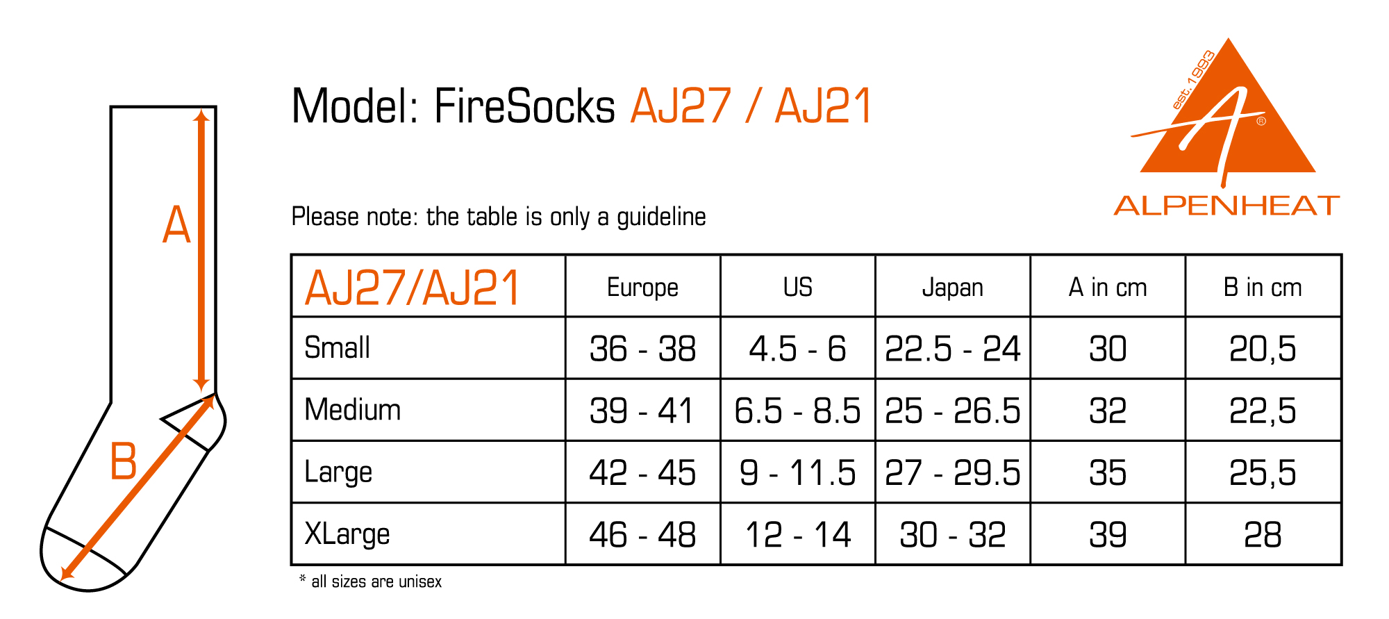 ALPENHEAT Chaussettes Chauffantes FIRE-SOCKS Modèle: AJ27 (1 paire/laine)