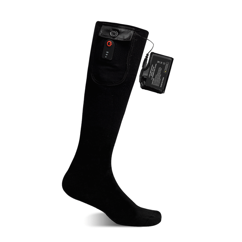 Fonctionnement simple et réglage de la température selon 3 niveaux grâce au bouton qui se trouve sur le haut de la chaussette. Affichage du niveau de chauffe par led.