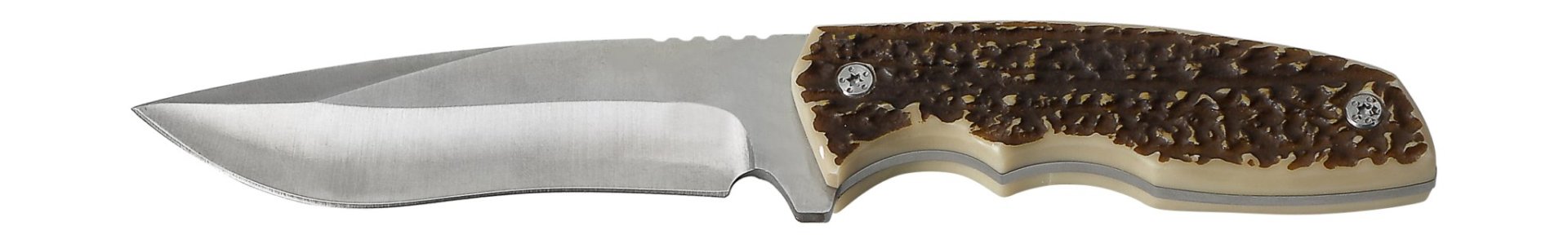 Couteau droit, lame de 10 cm en acier inox 420 A, manche imitation corne