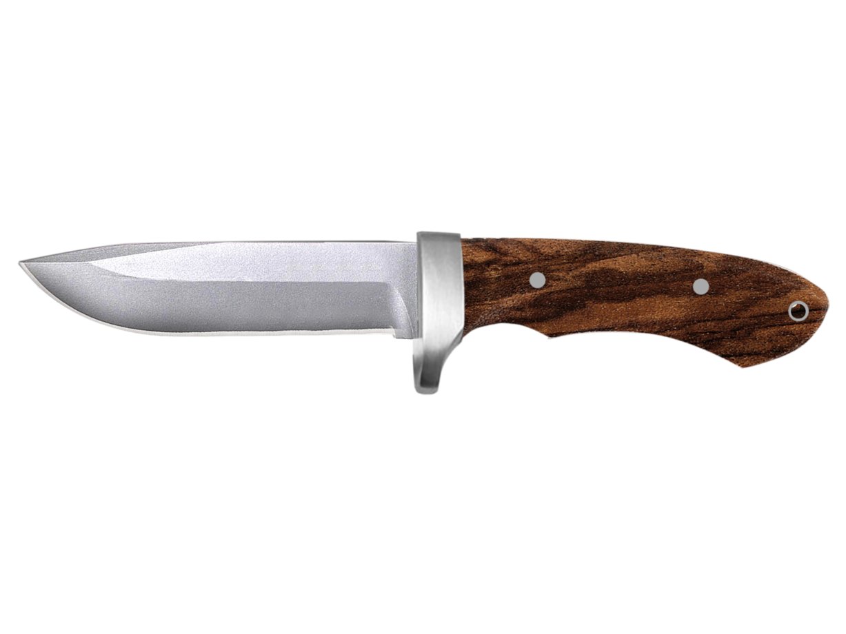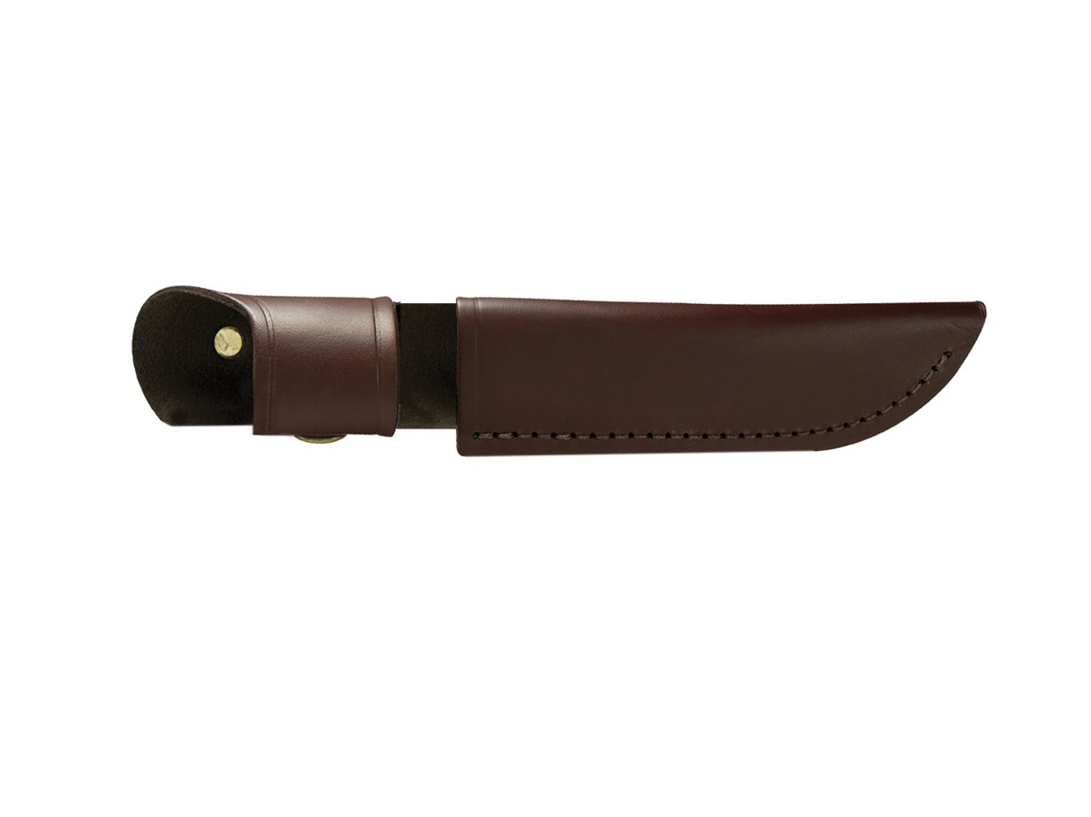 Couteau à lame fixe de 9 cm en acier 420 Carbone/chrome, manche en bois de 9,5 cm. Livré sous blister avec étui en cuir de buffle