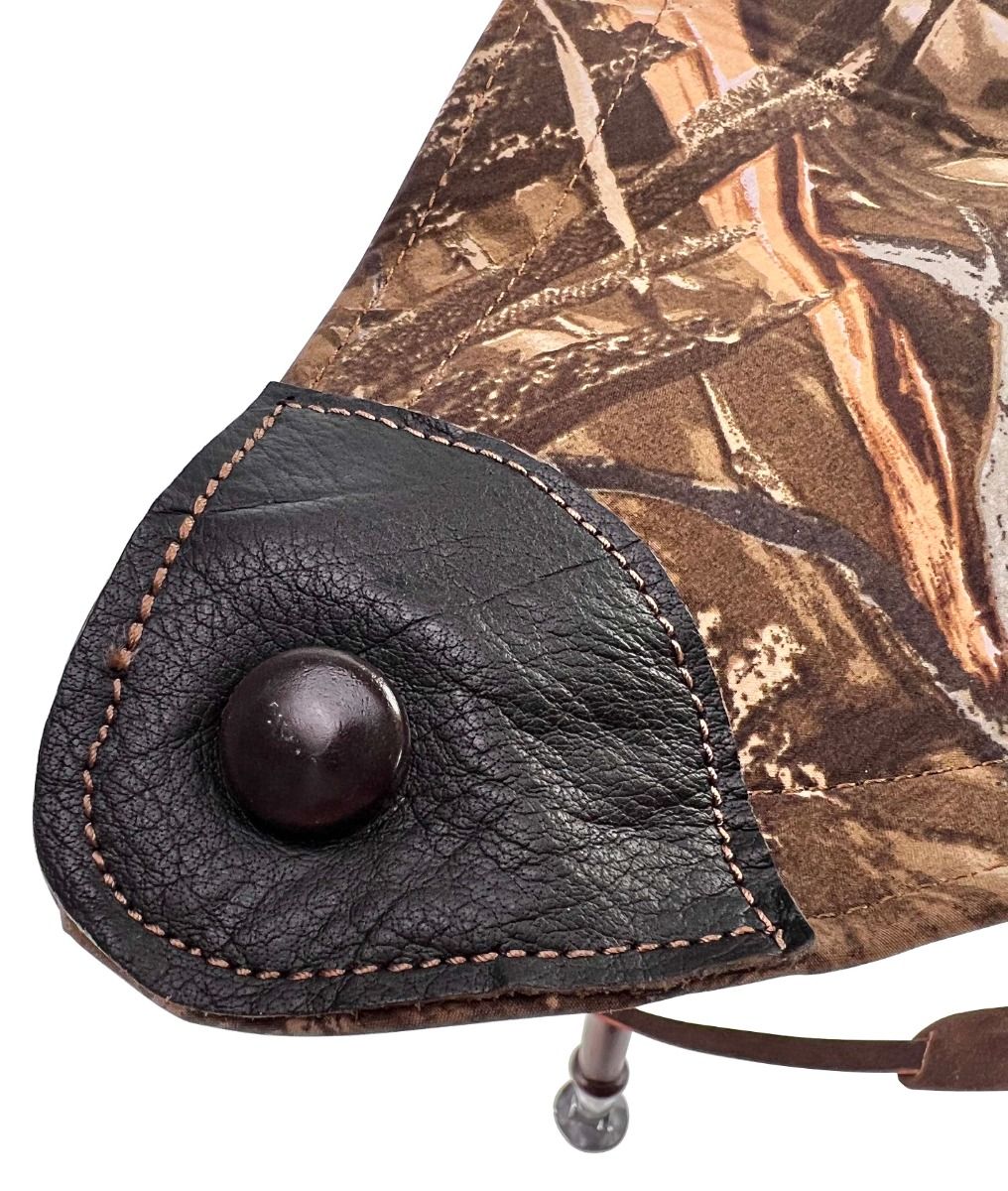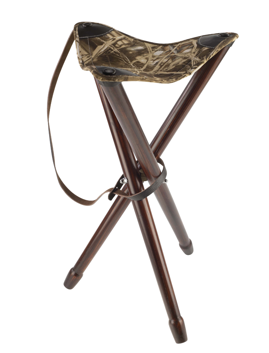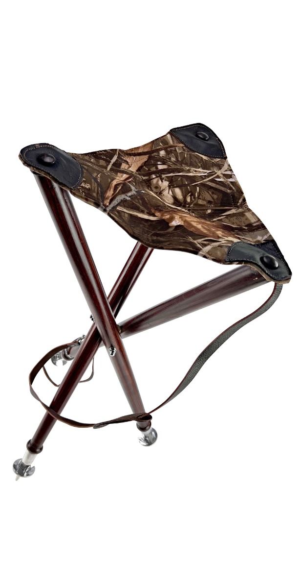 Trépied de 65 cm de hauteur avec une assise en cuir et tissu de couleur roseaux.