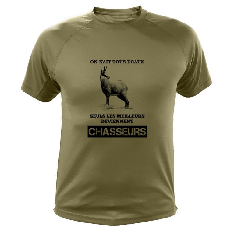 Tee shirt de chasse Chamois – On naît tous égaux seuls les meilleurs deviennent chasseurs