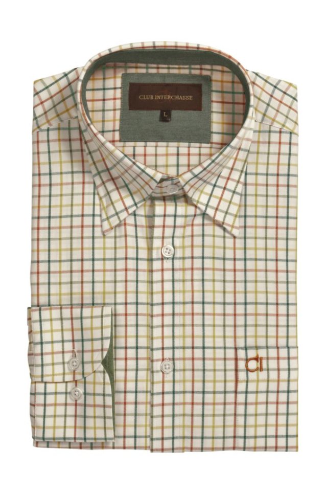 Chemise 100% coton. Coudières , intérieur du col et des poignets en opposition de couleur,col boutonné invisible, poche plaquée, broderie CI. Toues nos chemises sont livrées avec un bandeau à l’emblème de Club Interchasse