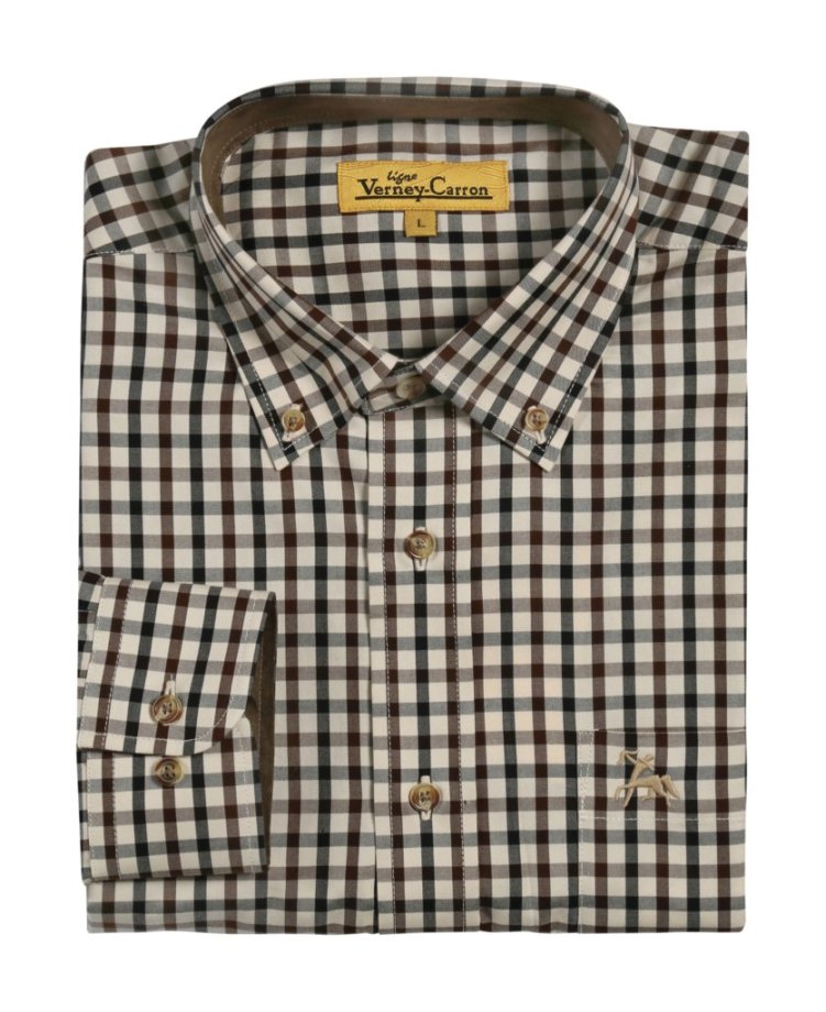 "Chemise 100 % coton, col pointes boutonnées. Intérieur du col et des poignets en opposition de matière.