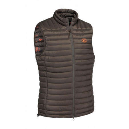 Gilet matelassé léger et chaud. 100% polyamide traité déperlant.Garnissage 90% duvet,10% plume de canard.Deux poches zippées, une poche intérieure.Broderie Club Interchasse..