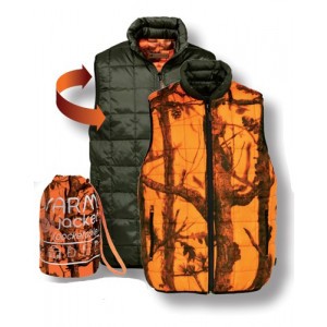Vous apprécierez le confort du gilet d'après-chasse ouatiné Percussion réversible Noir / GhostCamo B&B,en action de chasse comme le soir après la chasse :
