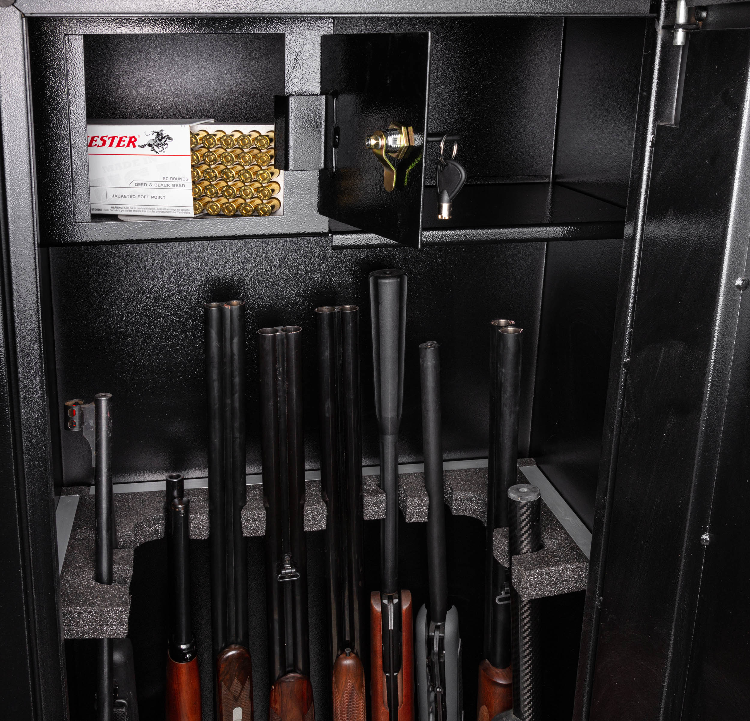 Finition suivant arrivage : porte de coffre avec sérigraphie blanche logo Waldberg ou avec logo Waldberg blanc autocollant. Tous nos coffres sont livrés avec un jeu de chevilles à béton de fixation, 2 clefs coffres à munitions et 2 x 2 clefs principales.