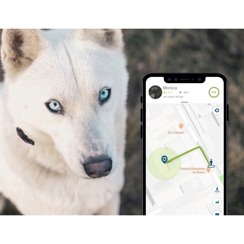 Grâce à la connexion Wi-Fi + GPS, pour la sécurité de votre chien ou de votre chat, vous pouvez définir une clôture virtuelle : si l’animal quitte le périmètre sélectionné, l’application vous envoie immédiatement un message d’alerte (par vibration).